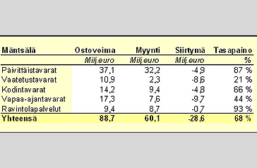 Myös erikoistavararyhmien tarjonnassa on jo vuoden 2003 aikana tapahtunut myönteistä kehitystä, mikä ei näy esitetyissä luvuissa vuodelta 2002. Vaikutus siirtymiin on kuitenkin vielä suhteellisen pieni.