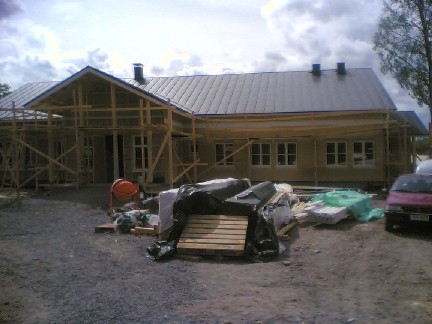 Viime kesänä palaneen rakennuksen tilalle on elokuun loppuun mennessä valmistumassa uudet toimitilat kannatusyhdistyksen ylläpitämälle leikkikoululle. Kiitosta hyvästä yhteistyöstä rakennusliikkeen, kunnan ja kannatusyhdistyksen jäsenten välillä kiiteltiin harjannostajaisissa pidetyissä puheissa samalla kun nautittiin perinteistä hernekeittoa.