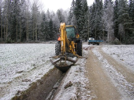 Salaojien rakentamisesta Esko Hirvosella on 14 vuoden kokemus. Hirvonen ajaa ojat juuri oikeaan syvyyteen lasertekniikan avulla. Laser hälyttää virheestä heti. Sadalla metrillä toleranssi on lasertekniikan ansiosta korkeintaan yksi millimetri, kertoo Hirvonen.