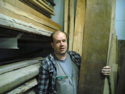 Kuvateksti: Marko Lindqvist veistää massiivimahongista kunnostettavan satamajäänsärkijä SS Turson kaiteet ja ovet.