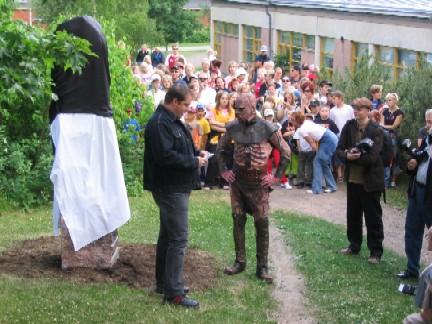 Klo 14.30 Lehdistön siirtyminen ulos Hard Rock -kiven luo, kunnanvaltuuston puheenjohtaja Jarmo Keskisen puhe