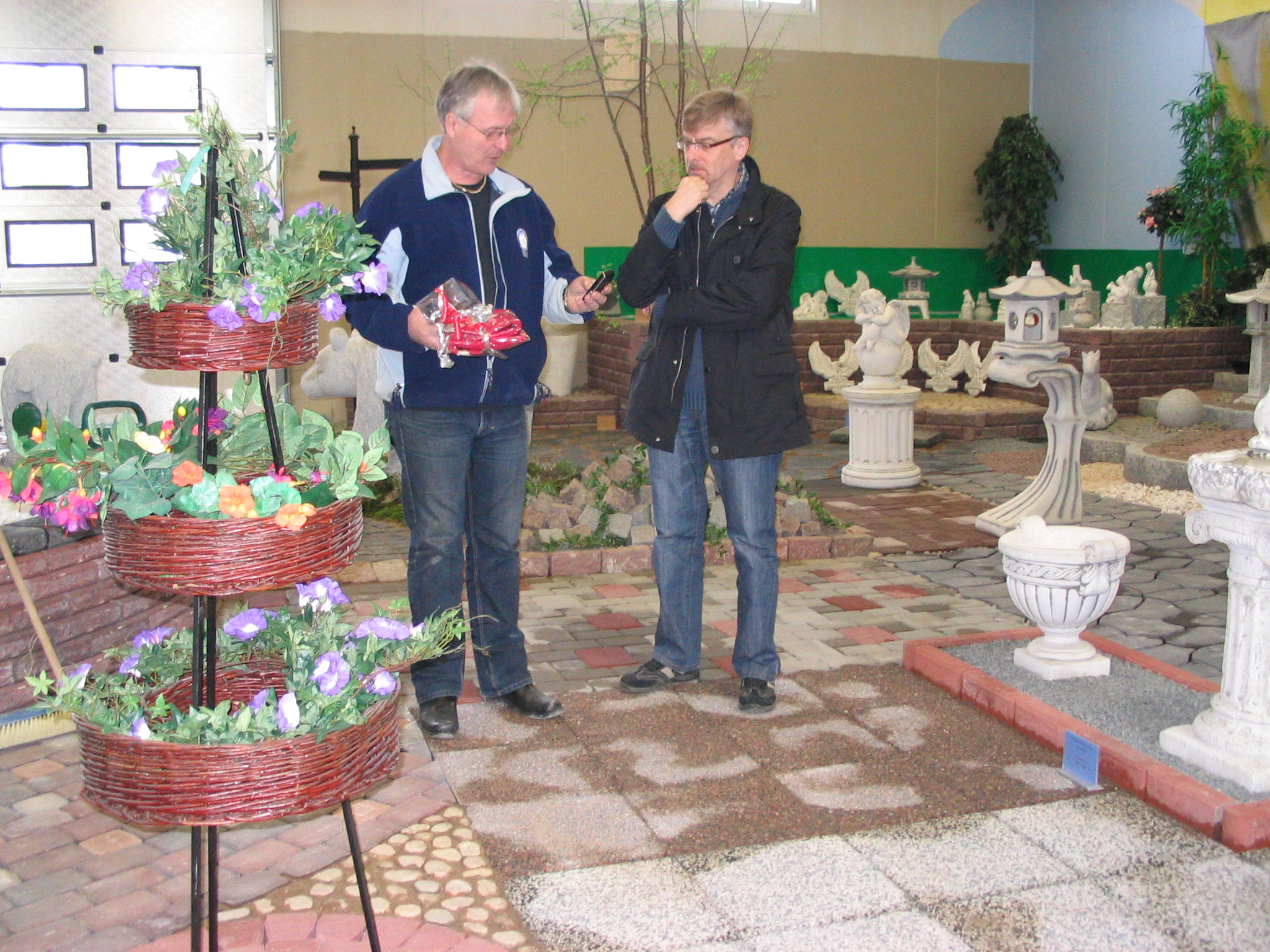 Kuvateksti: Yrittäjä Pekka Tanttu avasi uuden Kivapiha Oy liikkeensä Linnalan alueelle keväällä 2008, onnittelemassa Yrityskehityksen Jyrki Teeriaho.