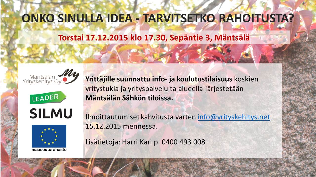 Rahoitusinfo Mäntsälässä 17.12.2015