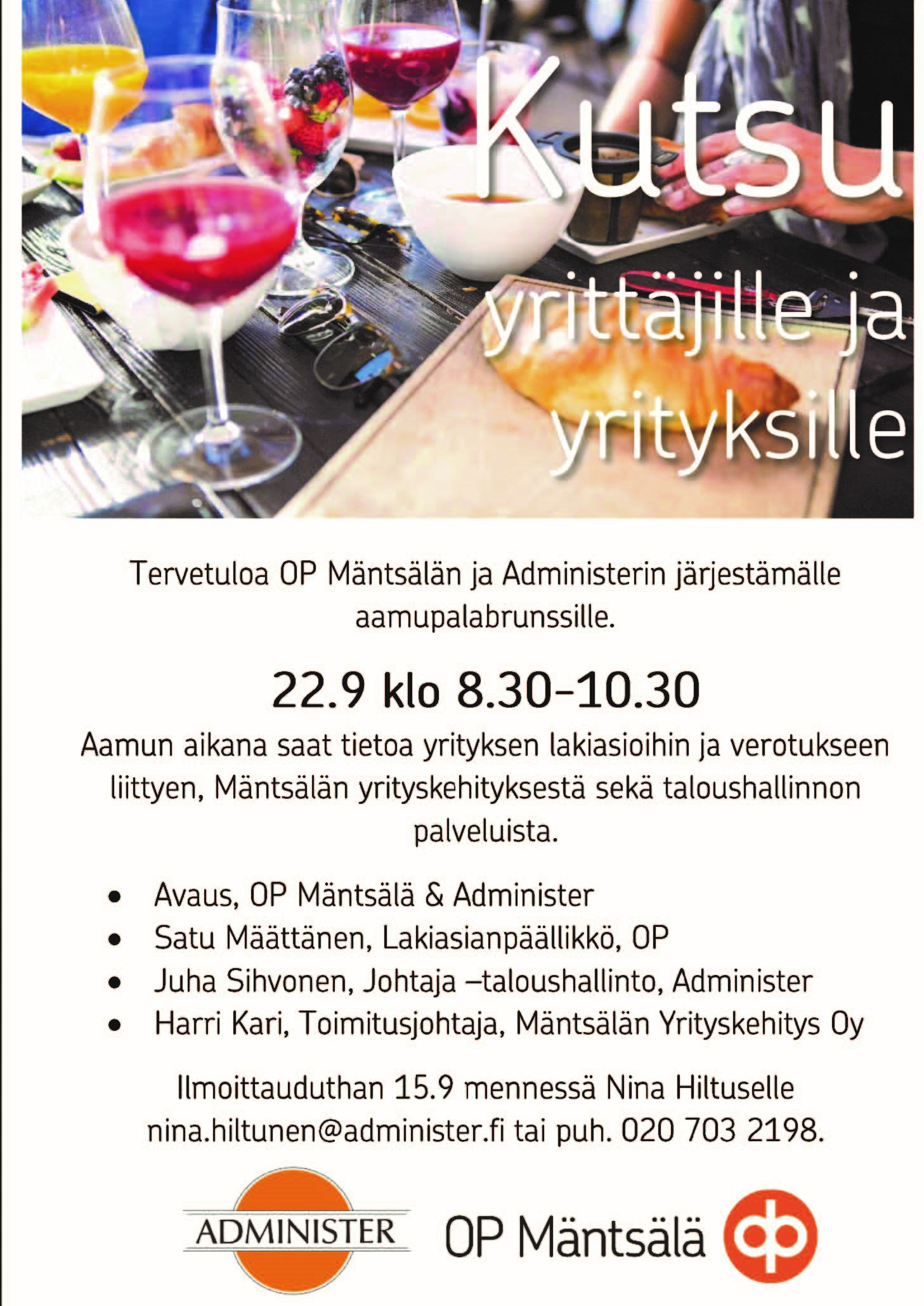 Mäntsälässä aamupalabrunssi yrittäjille 22.9.