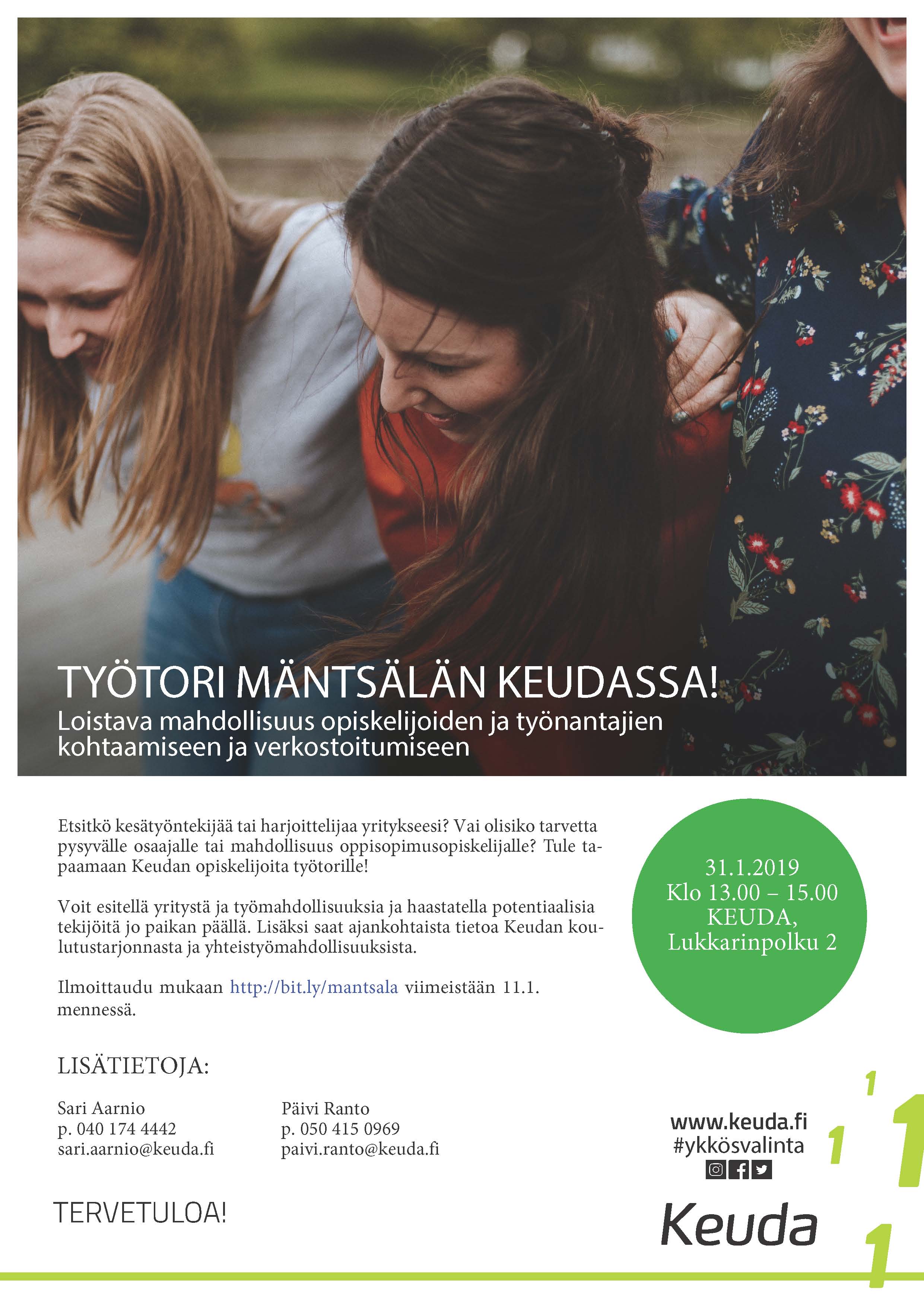 Olet tässä: Uutisia / 2018 Etsikö kesätyöntekijää tai harjoittelijaa - Keudan Työtori 31.1.2019 Julkaistu 4.1.2019