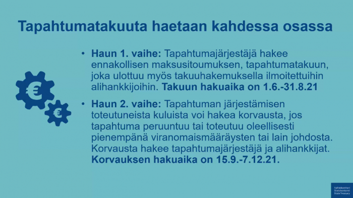 Lähde ja lisätiedot: https://www.valtiokonttori.fi/palvelut/korvaus-ja-vahinkopalvelut/tapahtumatakuu/