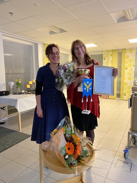 Kuvassa Kati Rintakorpi onnittelemassa Vuoden Sallia Marjo Havurinnettä