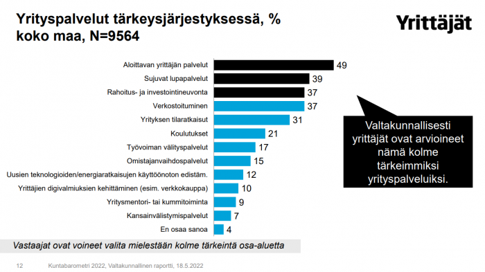 Kuntabarometri 2022 raportit kokonaisuudessan löydät täältä: https://www.yrittajat.fi/tutkimukset/kuntabarometri-2022/