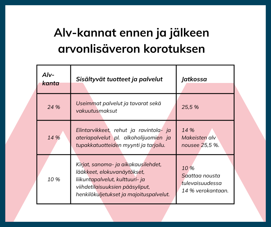 Alv-kannat ennen ja jälkeen arvonlisäveron korotuksen