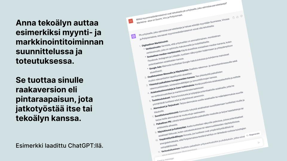 Esimerkki tekoälyn kyvystä luoda raakaversio myynninedistämiskeinoista.