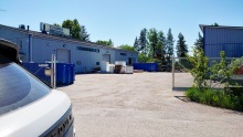 Samassa pihassa olevassa pienemmässä rakennuksessa on kaksi erillistä hallitilaa, joista molemmissa on erillisen käyntioven lisäksi isot pariovet. Pariovien leveys on noin kolme metriä ja korkeus noin 3,2 metriä. Lisäksi rakennuksen päädyssä on varastoksi soveltuva tila.