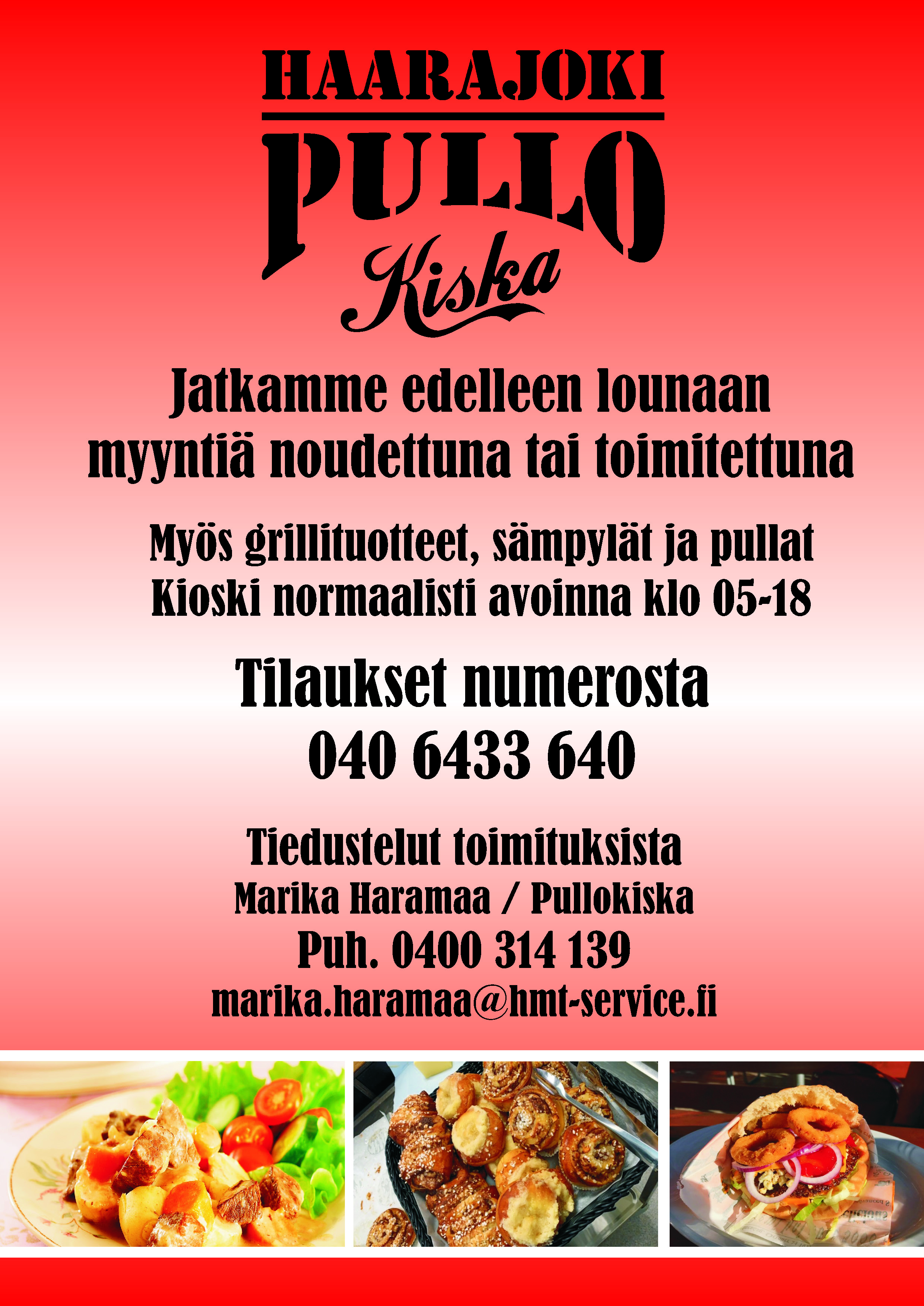 Kotiruokalounas, take away, itse leivotut pullat ja muut leivonnaiset.